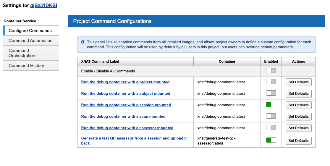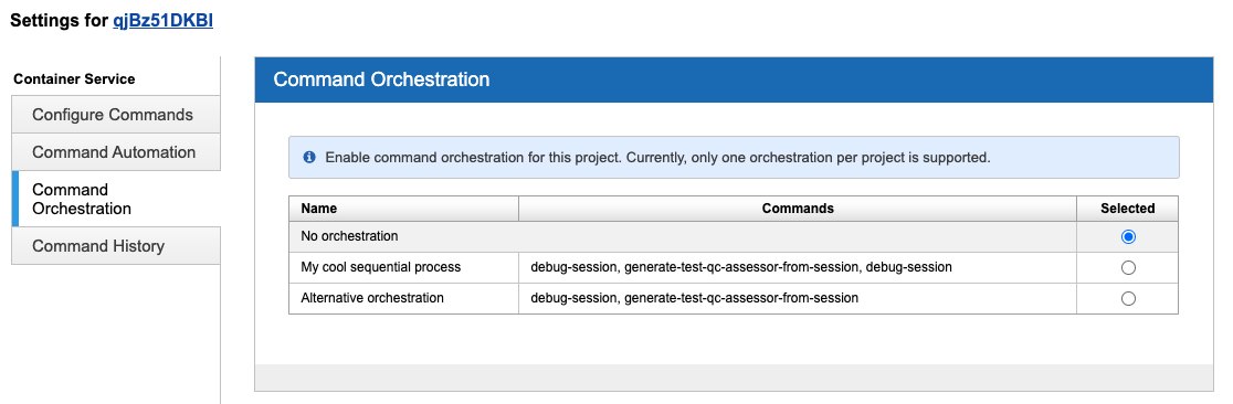 If a site administrator has set up command orchestrations for your XNAT, you may add one* to your project.