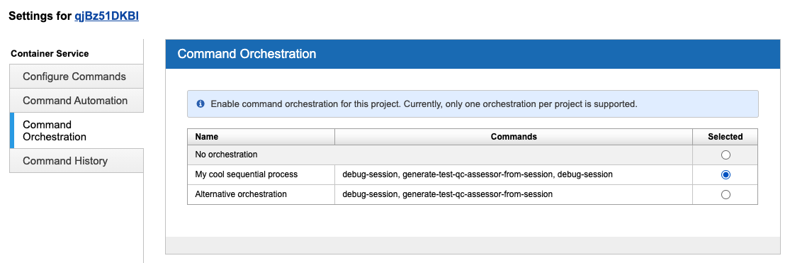 Select the orchestration you wish to enable, and note that its component commands will be automatically enabled on your project: