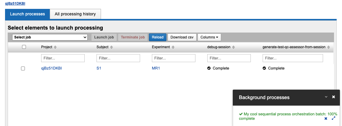 If you launch your containers from the Batch Launch Processing Dashboard, the Background processes tab will monitor the entire orchestration: