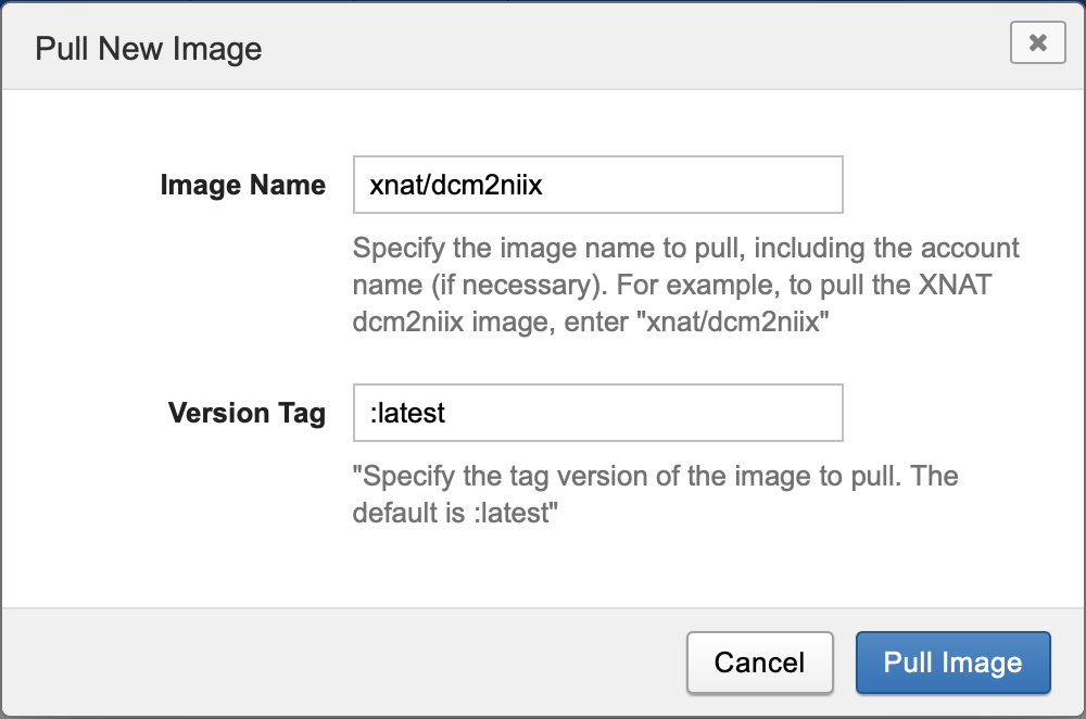 Enter the image's name and version, then click Pull Image.