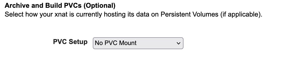 If you select one of the two options above that notes the usage of PVC mounts, you will be provided with a new set of fields. In the case of option (2) above, you will see: