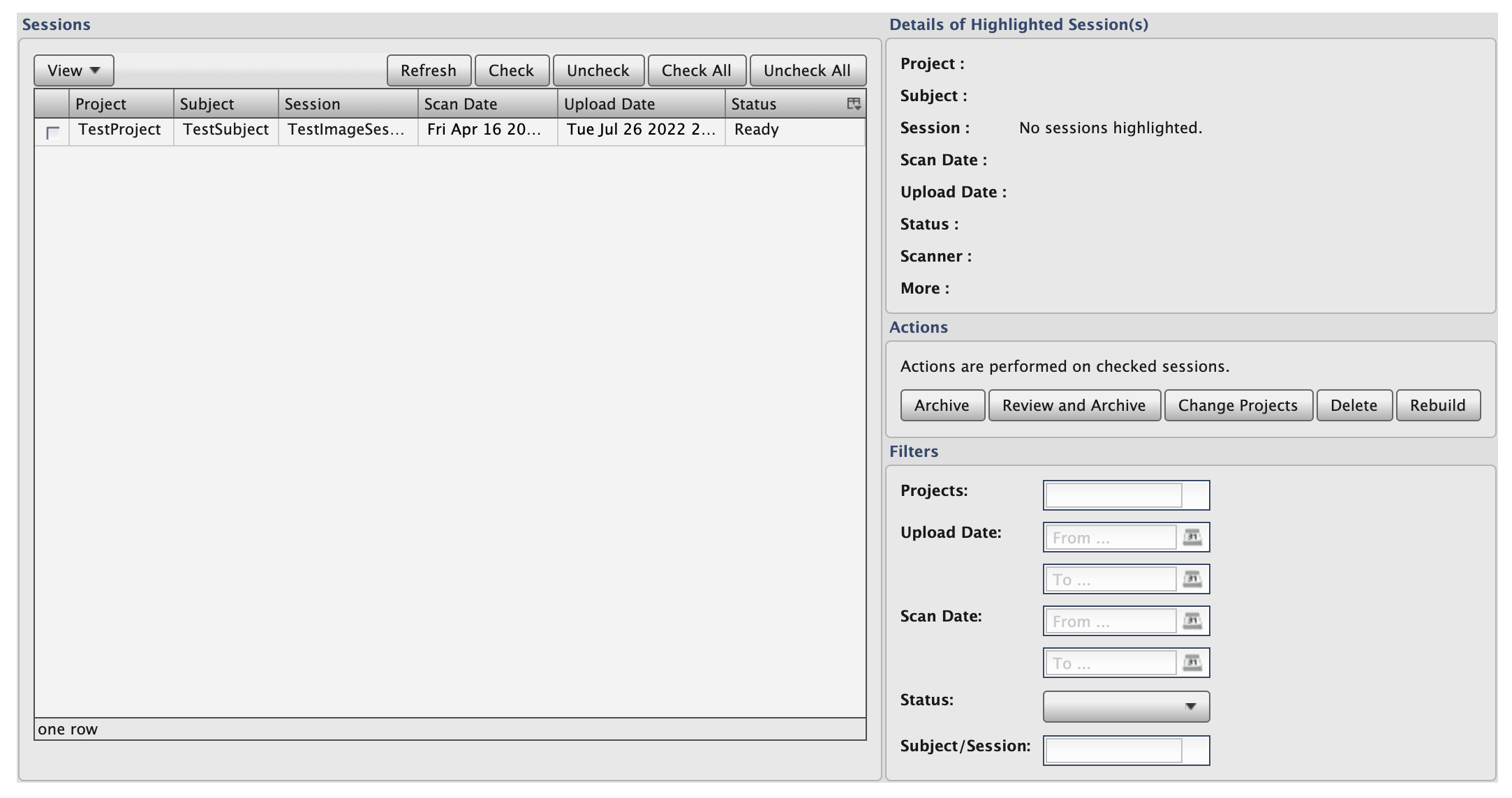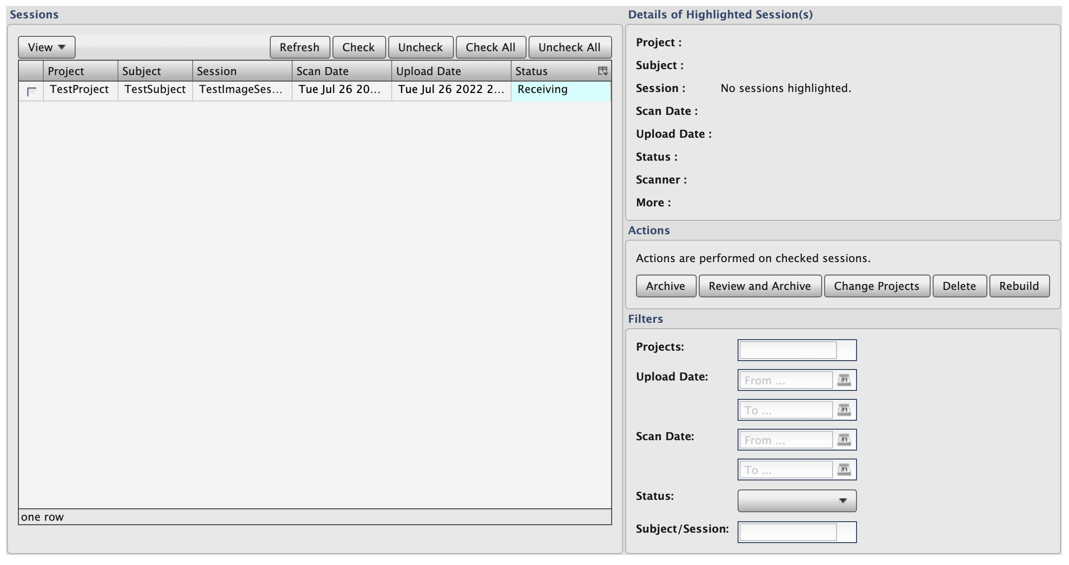 In the XNAT UI, navigate to the prearchive to see the image session.