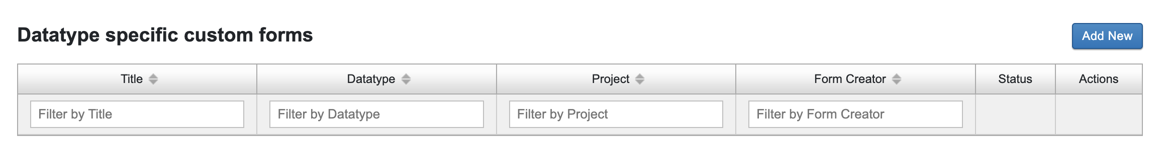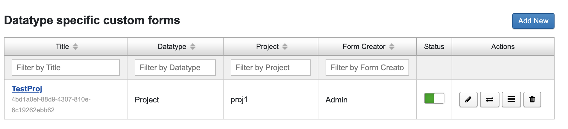 Click on Add New to begin the process of creating a new form. The form creation wizard will walk you through three steps in order to create a form.