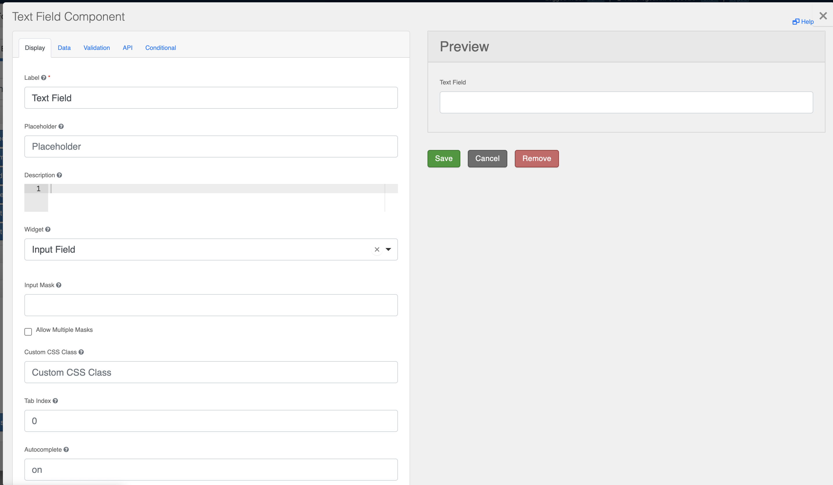 Remove : remove the component from the form.