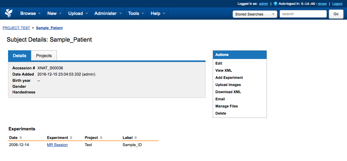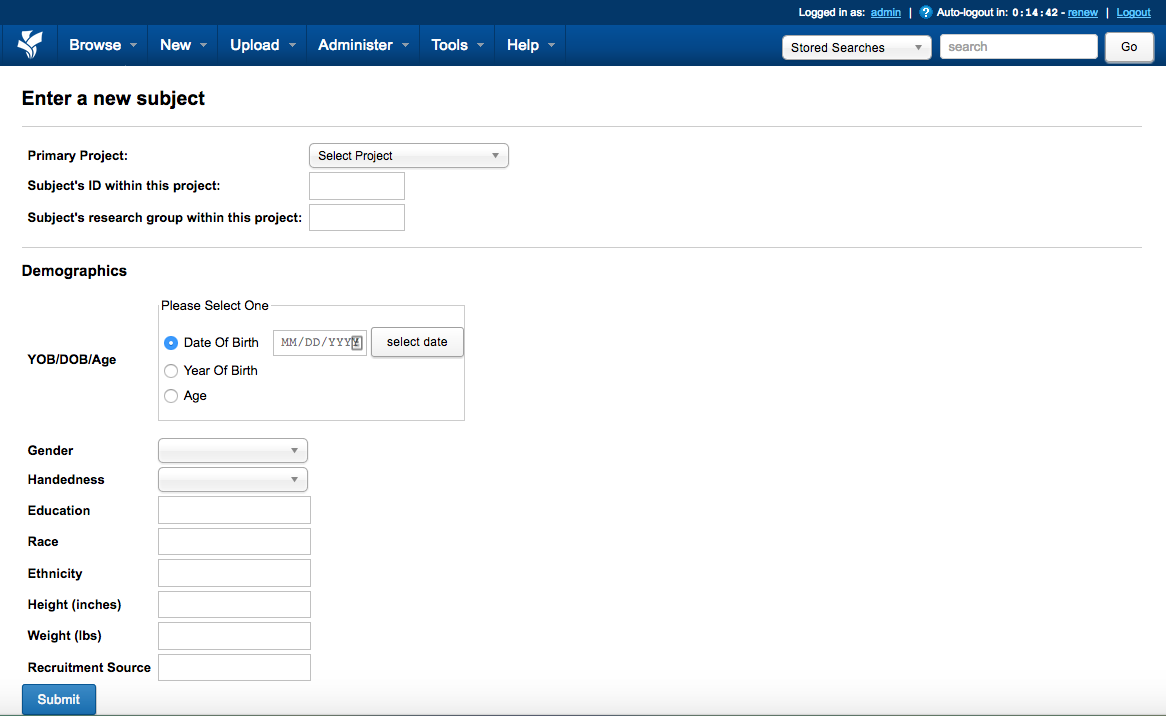 Creating Subjects in the XNAT UI
