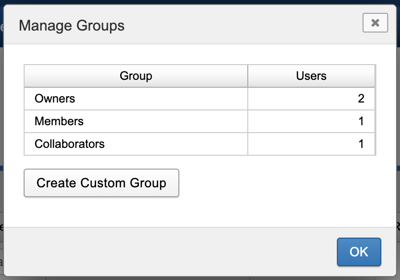 Within this dialog, click the Create Custom Group button to be taken to the group creation screen.