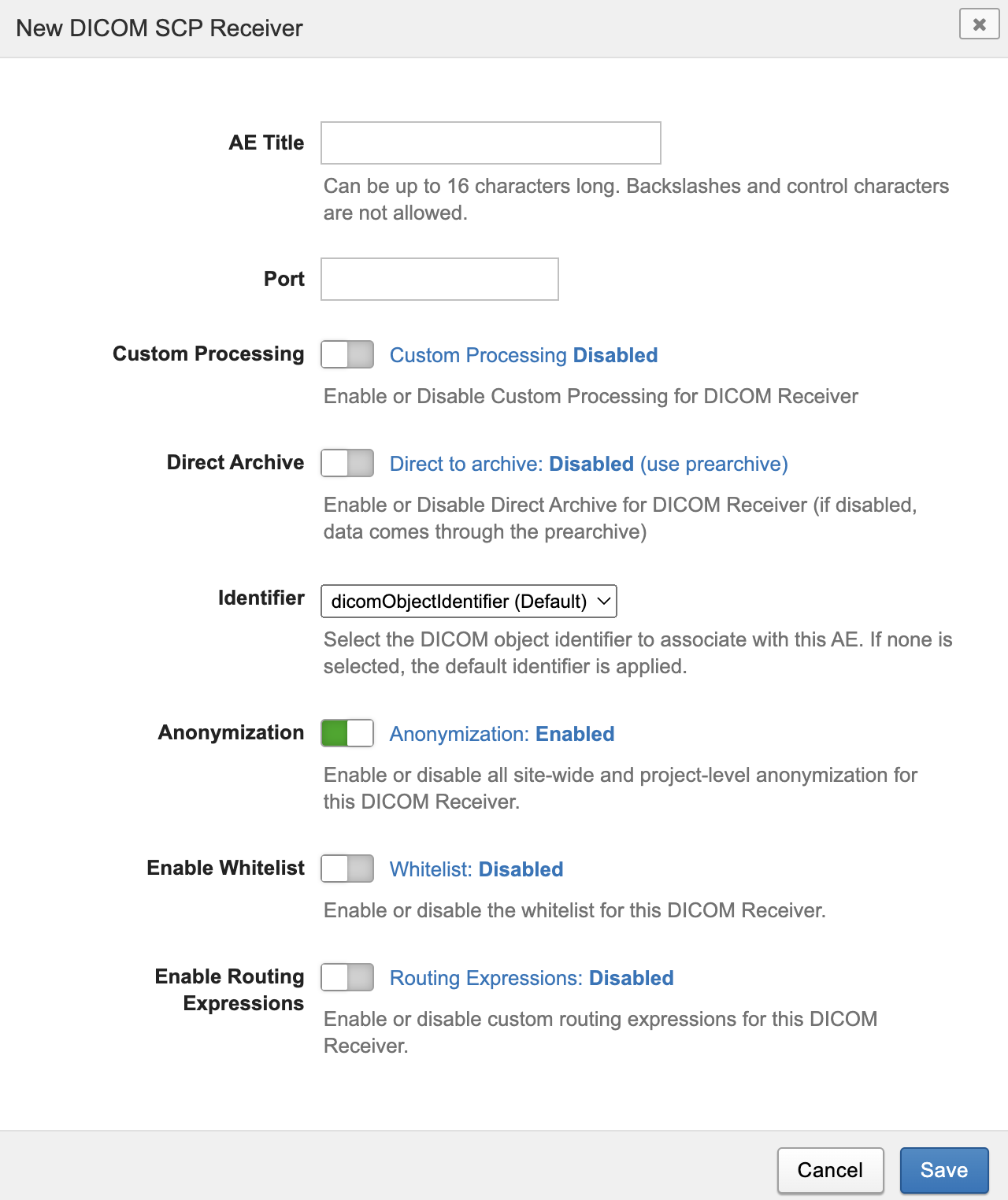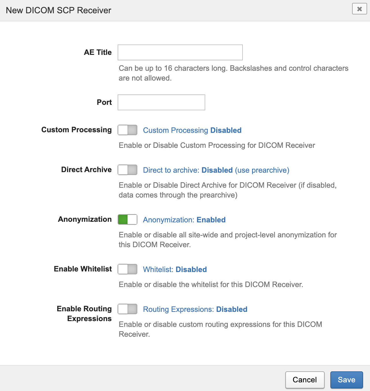 Configuring a new DICOM SCP receiver in XNAT is fairly simple, but there are many options for customizing the behavior of these receivers.