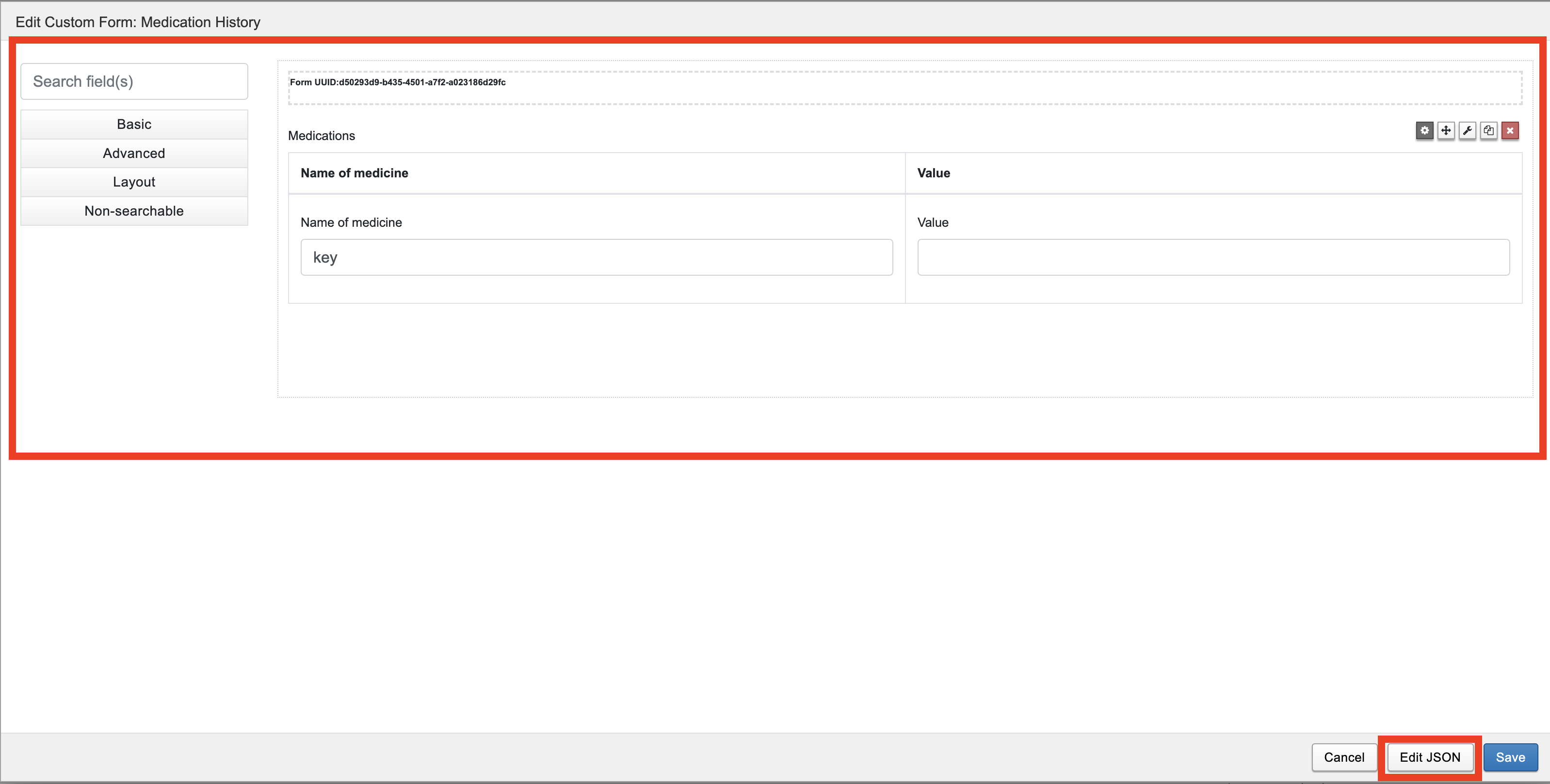 Editing a form JSON