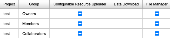 | Configurable Resource Uploader | Toggles the availability of the Configurable Resource Uploader, which provides a drag-and-drop file uploader for project users that can be configured by project owners for each data element in the project. See Creating A Custom Resource Uploader | On for all user roles |