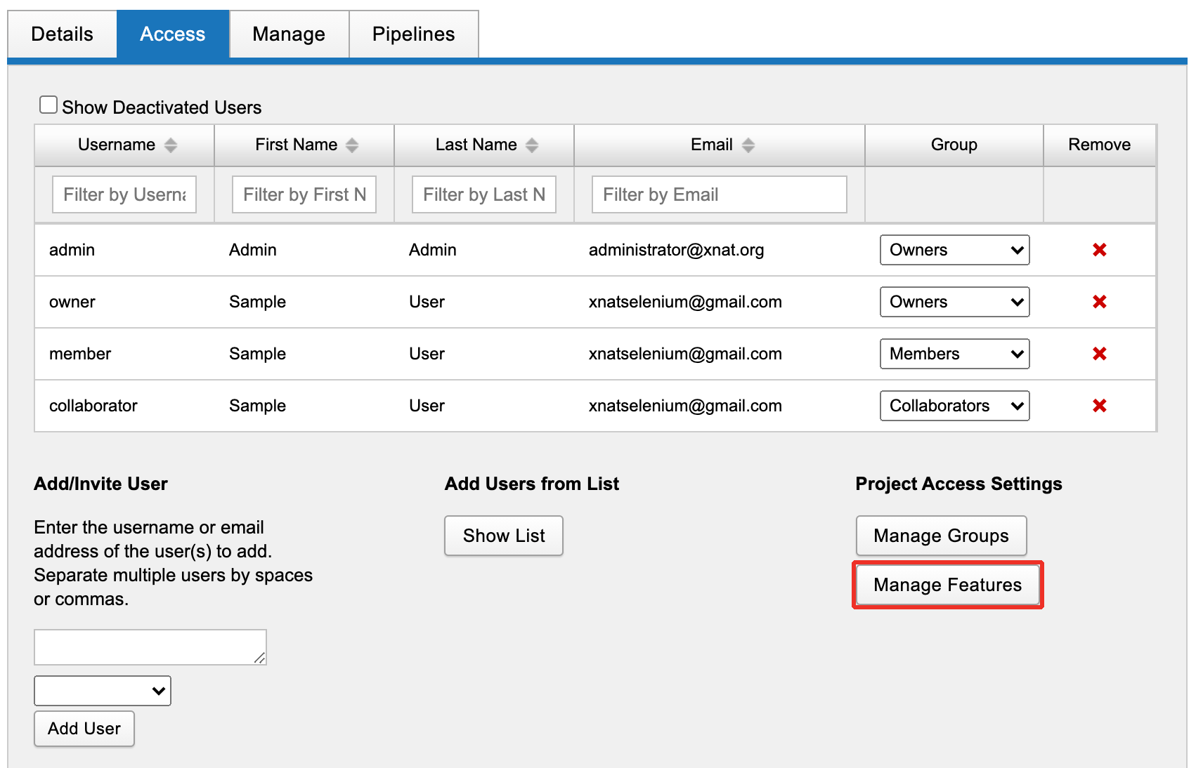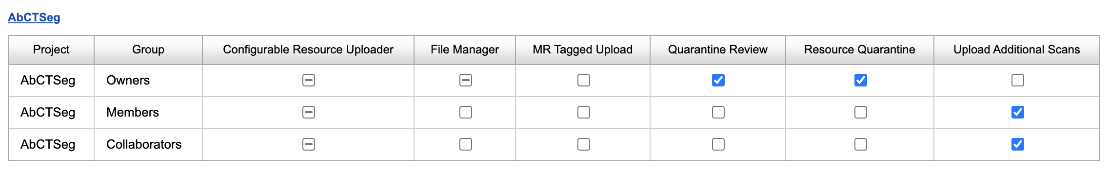 XNAT Project Owners have the ability to customize access to certain functional "features" within their projects. Each of these features can be enabled or disabled for each of the user groups in your project, including any Custom User Groups that you may have created.