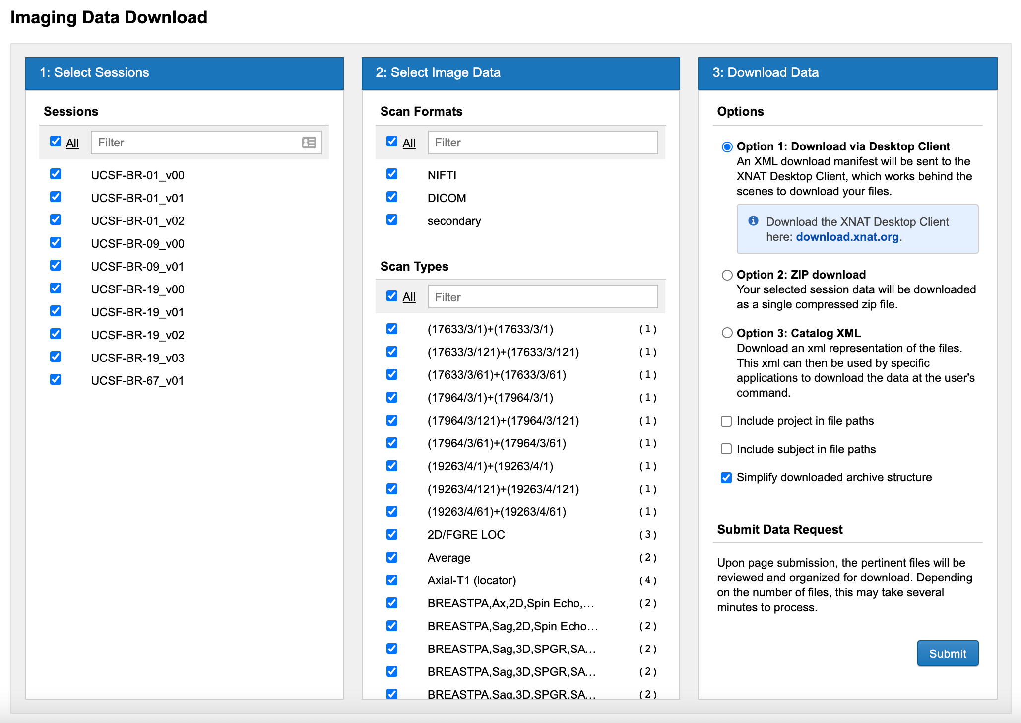 Using any of these mechanisms will bring the user to the download UI in the XNAT webapp.