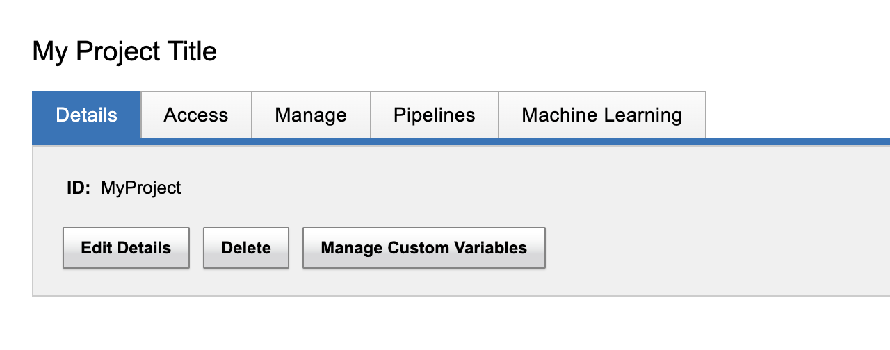An XNAT Project is uniquely identified by its ID which is a string of characters established at the project's creation. A project's ID can be found on the project's home page. We will use "MyProject" for this example.