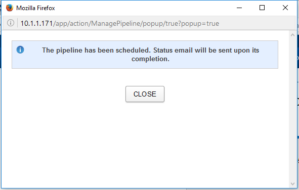 4. Click Submit to launch the pipeline. A new window will open with a confirmation message.