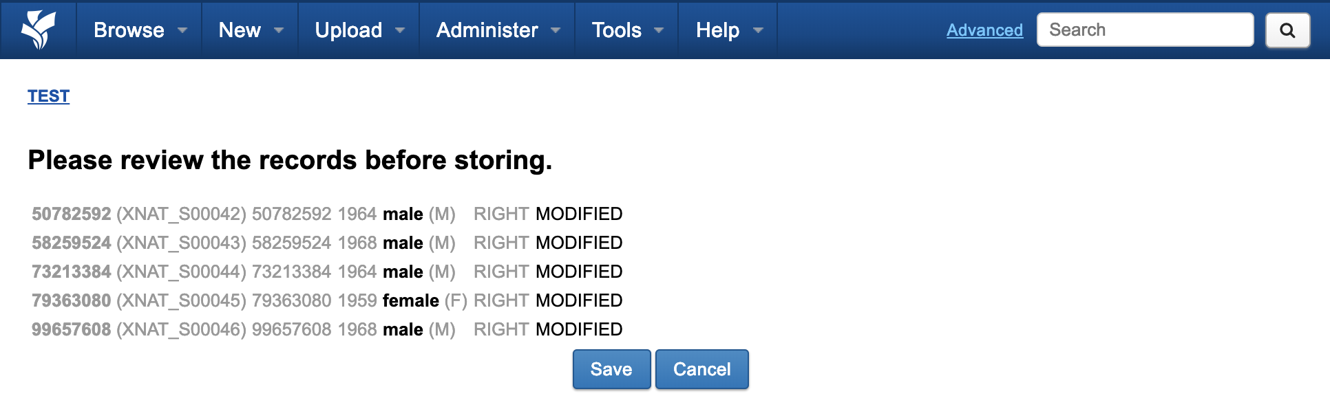 Upon saving this modified data and returning to your project home page, your subject listing will now have corrected values for the gender column.