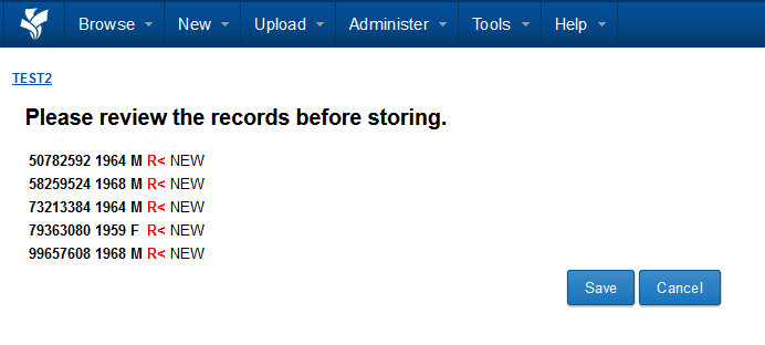 XNAT can only upload data that is valid for the data attributes you have selected. Any invalid data will be ignored during the upload process. Invalid data is highlighted in red in this review screen. In our case, the value "R" is not an accepted value for the "handedness" attribute. Handedness expects data to be coded as "LEFT" or "RIGHT," so we will have to recode our data and try again.