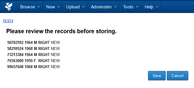 7. Click "Upload." The page will refresh and display the data you have selected.