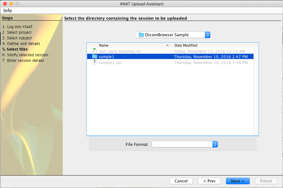 Browse your local file system, looking for the folder that contains the image session you wish to upload. When you have selected the containing folder, click "Next".