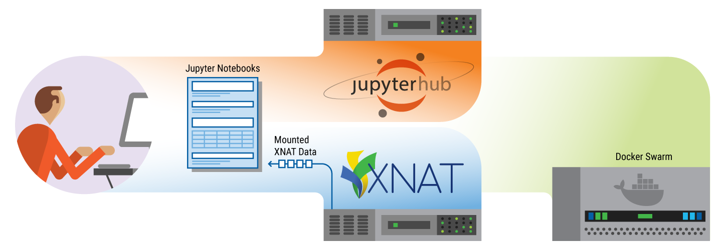 The XNAT / JupyterHub integration allows users to launch Jupyter Notebooks with mounted XNAT project data, creating a prebuilt data exploration playground. Notebooks run in Docker Swarm containers, providing a scalable and isolated environment for running code against XNAT data. Additionally, notebooks can be saved to your XNAT and reopened for future work. This documentation will guide you through the setup, usage, and key features of the XNAT / JupyterHub integration.