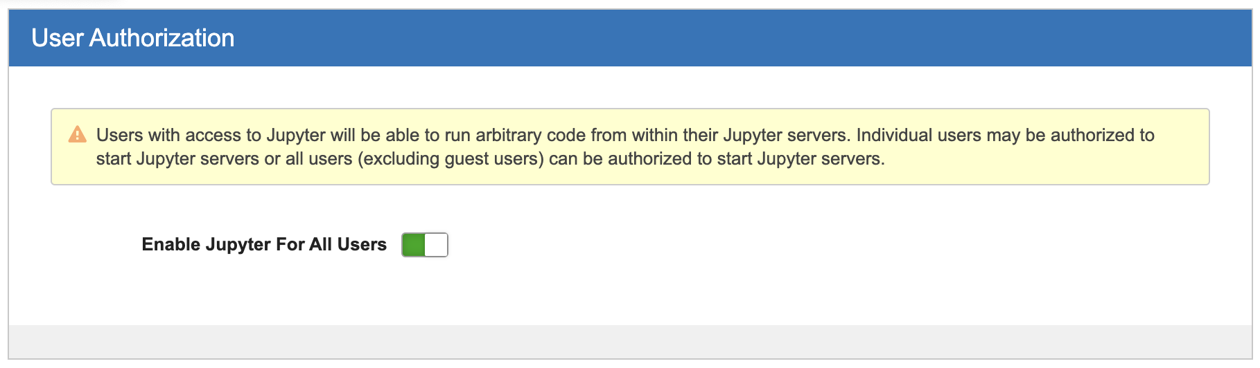 - Toggle the switch to enable or disable Jupyter access for all users.