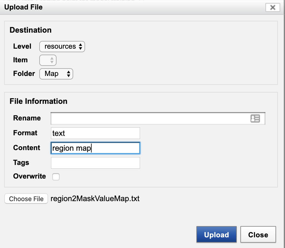 Save this file with name "region2MaskValueMap.txt"