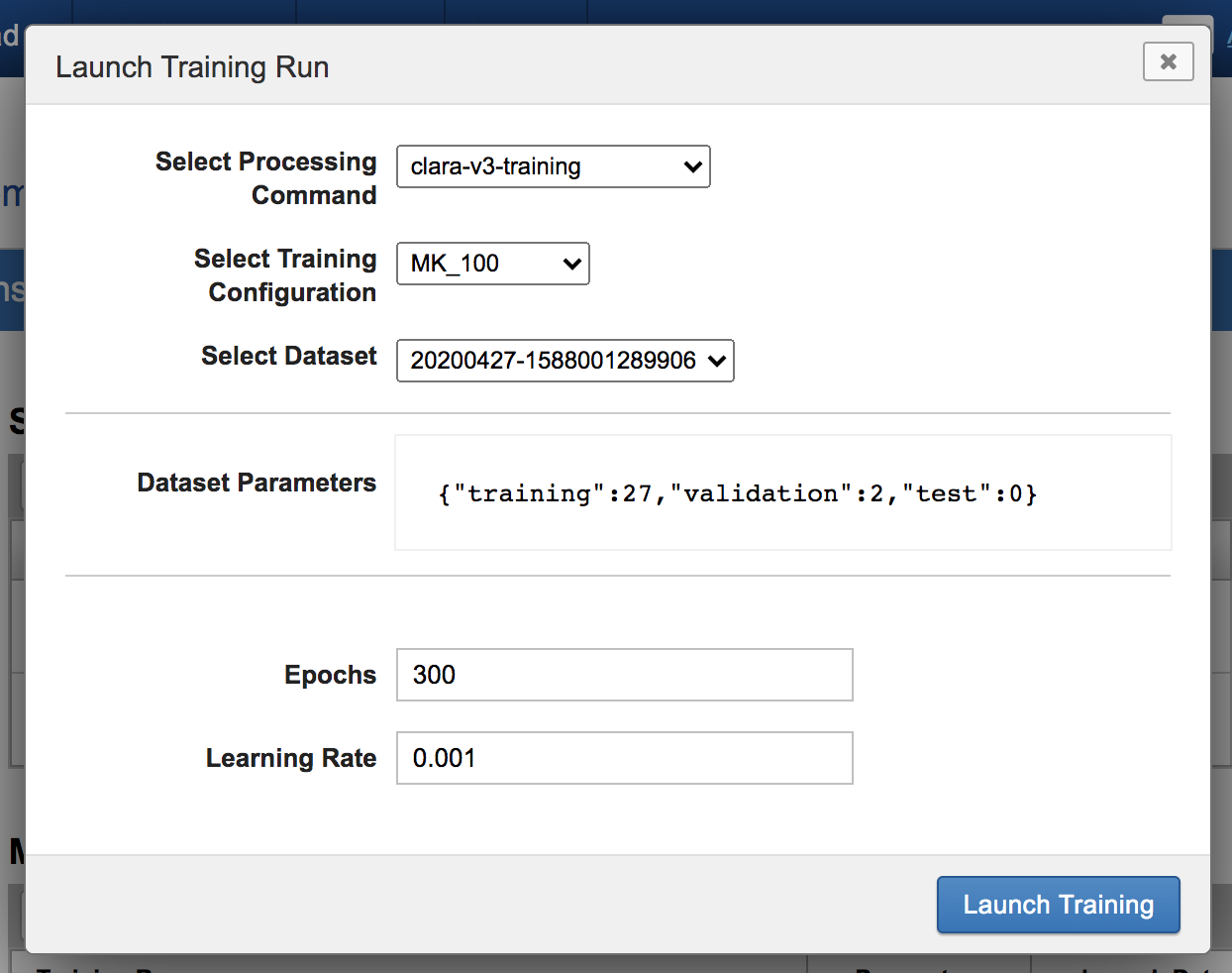 - Adjust your parameters as necessary and click "Launch Training". After configuring the launch, a success dialog will display.