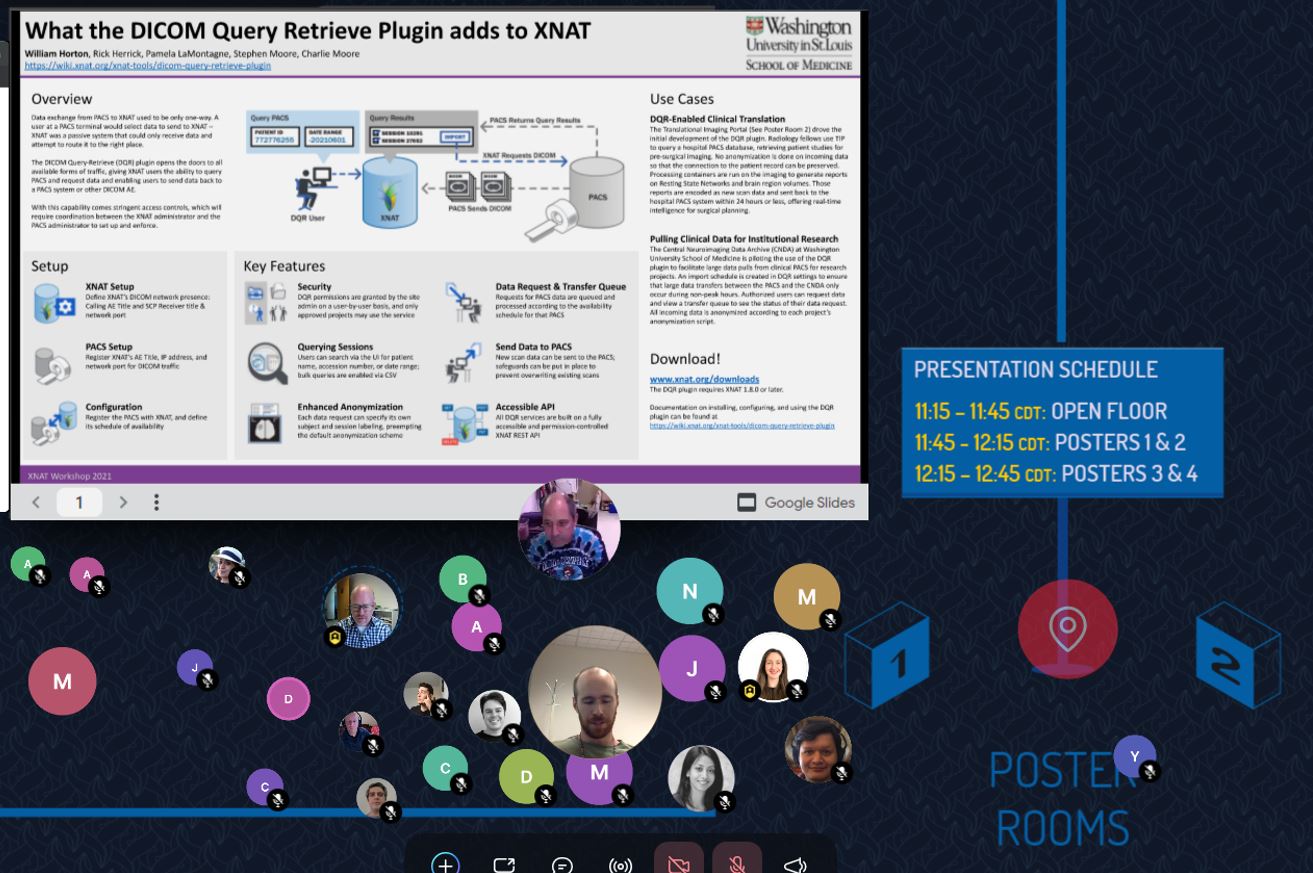 The XNAT Team, in partnership with the Institute of Cancer Research, Cancer Research UK's National Cancer Imaging Translational Accelerator (NCITA) and the Health and Bioscience IDEAS training program at University College London, hosted a two-day virtual workshop starting September 13, 2021. We had more than 300 registrants and 200 participants across the two sessions, including a fantastic and engaging virtual live poster session.