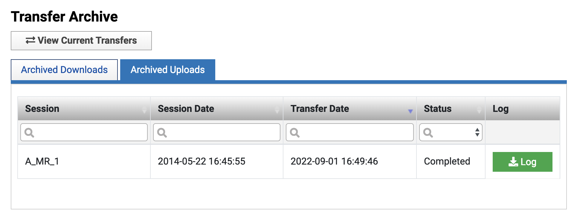 To see a history of past data transfers, you can go to "View Archived Transfers".