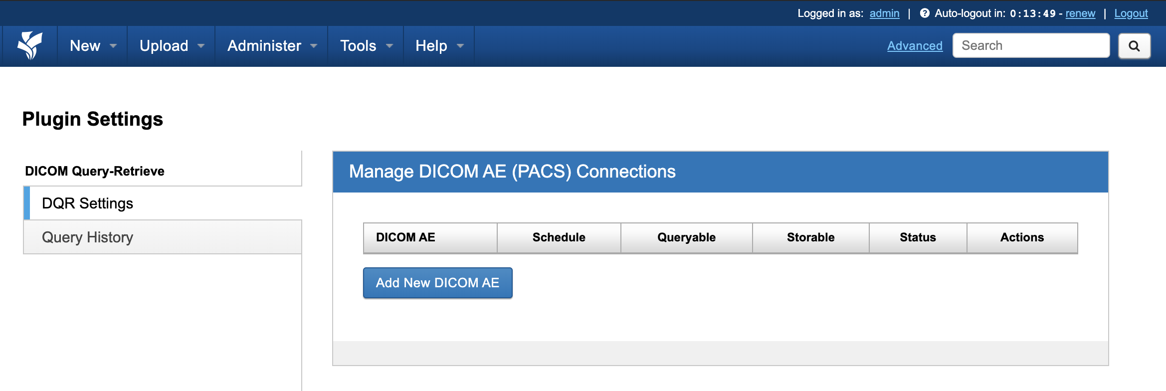 When your plugin is successfully installed, you should see a set of new Admin UI controls in XNAT under Administer > Plugin Settings > DICOM Query Retrieve