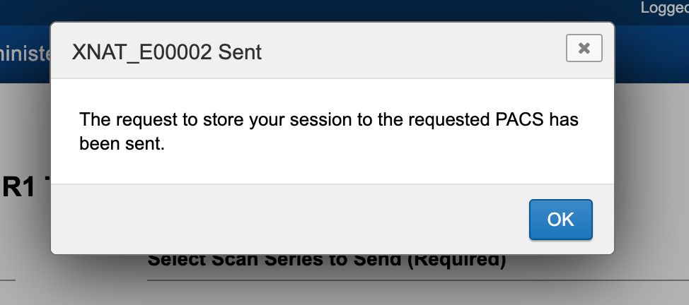 After you have selected the PACS you want to send to and the scans you want to send, click "Send Selected Series to PACS" to start the export. If the export is successful, you will see the following dialog: