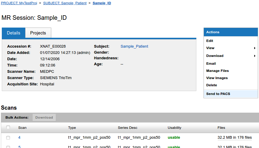 In addition to pulling DICOM data from a PACS into XNAT, you may wish to push data from XNAT into a PACS. You might want to push the data you pulled from one PACS to another PACS, push data back to a PACS after making changes to it, or push data that came into XNAT from a non-PACS source.