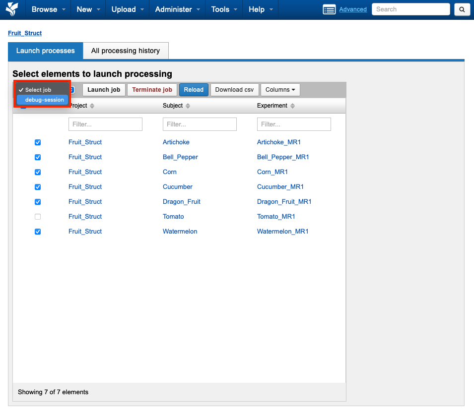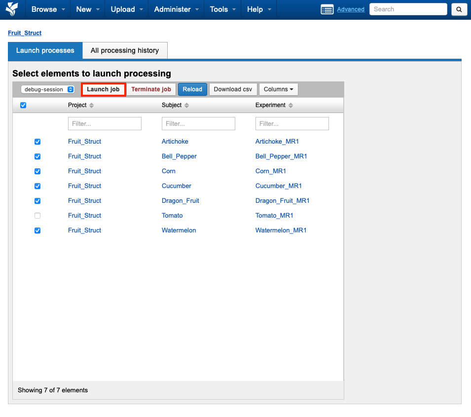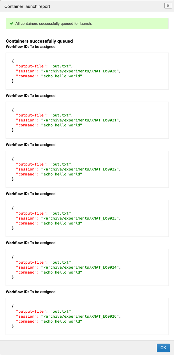 The Batch Launch Plugin includes the capacity to launch and monitor multiple containers across a set of subjects, sessions, or scans. Launching container processing on project data requires that an appropriate Container Service command be installed and enabled on the project of interest.