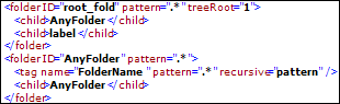 child – this element can occur multiple times under <folder> element, each occurrence specifying an ID of child file or folder. Any tag value inferred from either file or folder name has to be defined by <tag> element, under <file> or <folder> element, respectively. If the tag is defined under folder, it will be attached to all files in this folder, regardless of an individual file name.