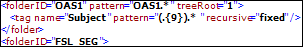 This folder template describes folders with name starting with “OAS1”, and each file in such folders will be assigned the tag with name “Subject” and value constituting the first 9 characters of the folder name. This tag will be assigned to all subfolders as well. So, for instance, if you have you directory structure with root named after subject, this rule will assign the tag “subject” to all files under this folder, recursively.