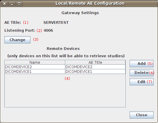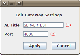 - Allows you to configure the XNAT Gateway Server's AE title and listening port. Explained in the next step.