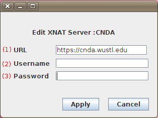 - The actual hostname or IP address of the XNAT server. The CNDA, for example, is located at "https://cnda.wustl.edu/".