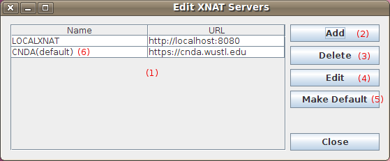 - Edits the highlighed XNAT server. Explained in Step 7.2.