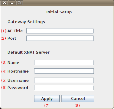 The first time the XNAT Gateway GUI is run, you will see the initial setup screen.